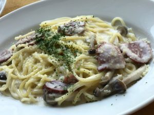 昼:合鴨のクリームパスタ